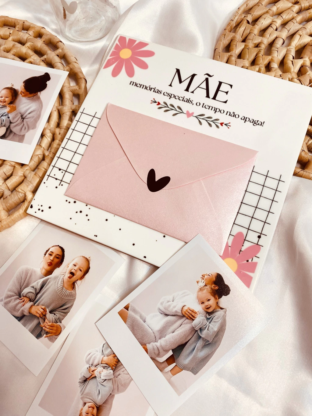 Lindo azulejo no estilo porta foto incluso 6 fotos polaroid, para eternizar momentos especiais. Uma ótima e diferenciada opção de presente para você surpreender sua mãe nesse dia especial