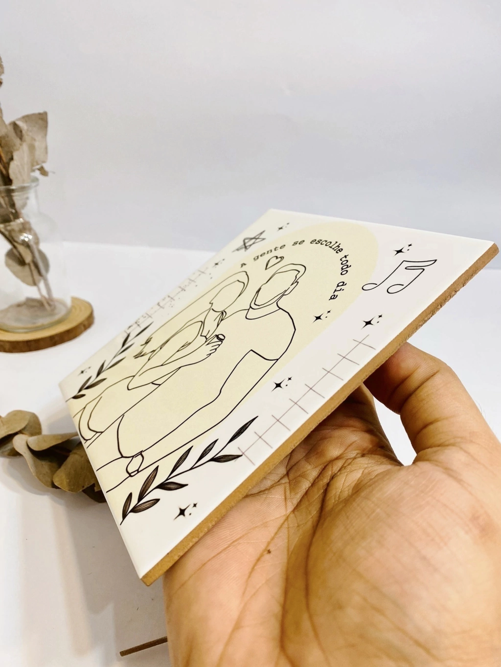 Lindo azulejo personalizado no tamanho 15x15cm com ilustração lineart pra você personalizar e presentear quem você ama.