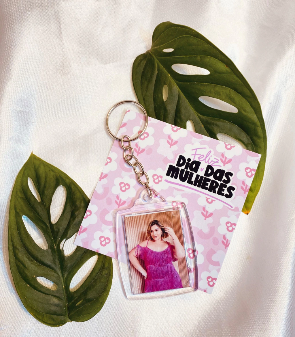 Lindo chaveiro de acrílico dupla face com foto + frases personalizadas para o dia da mulher. Uma ideia de presente super fofa e delicada para esse dia tão especial.