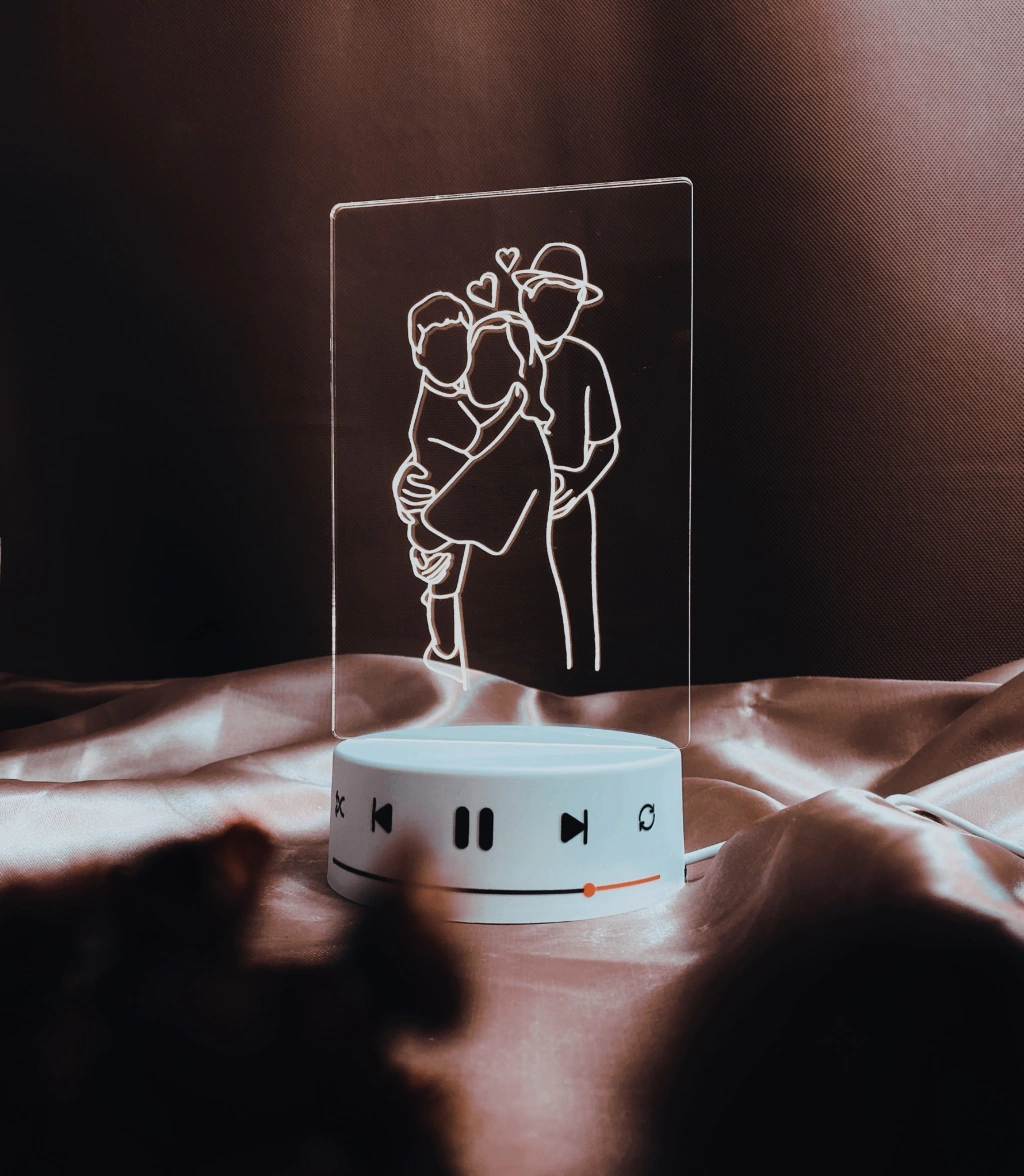 Linda luminária de mesa - linhas de amor. Personalizada com sua foto com efeito de ilustração line art.