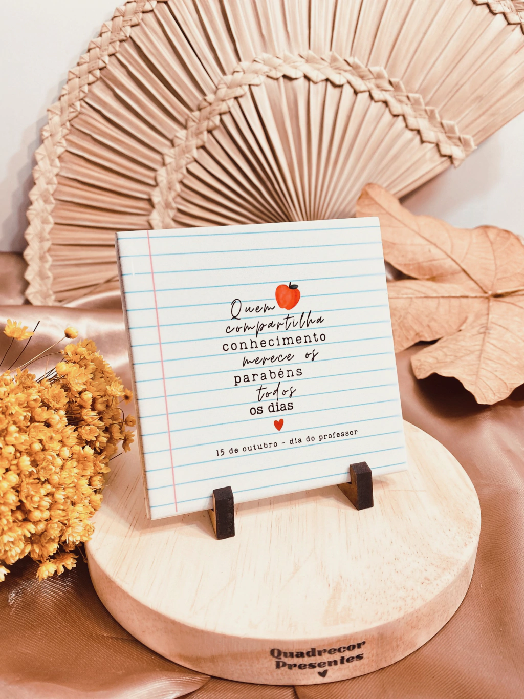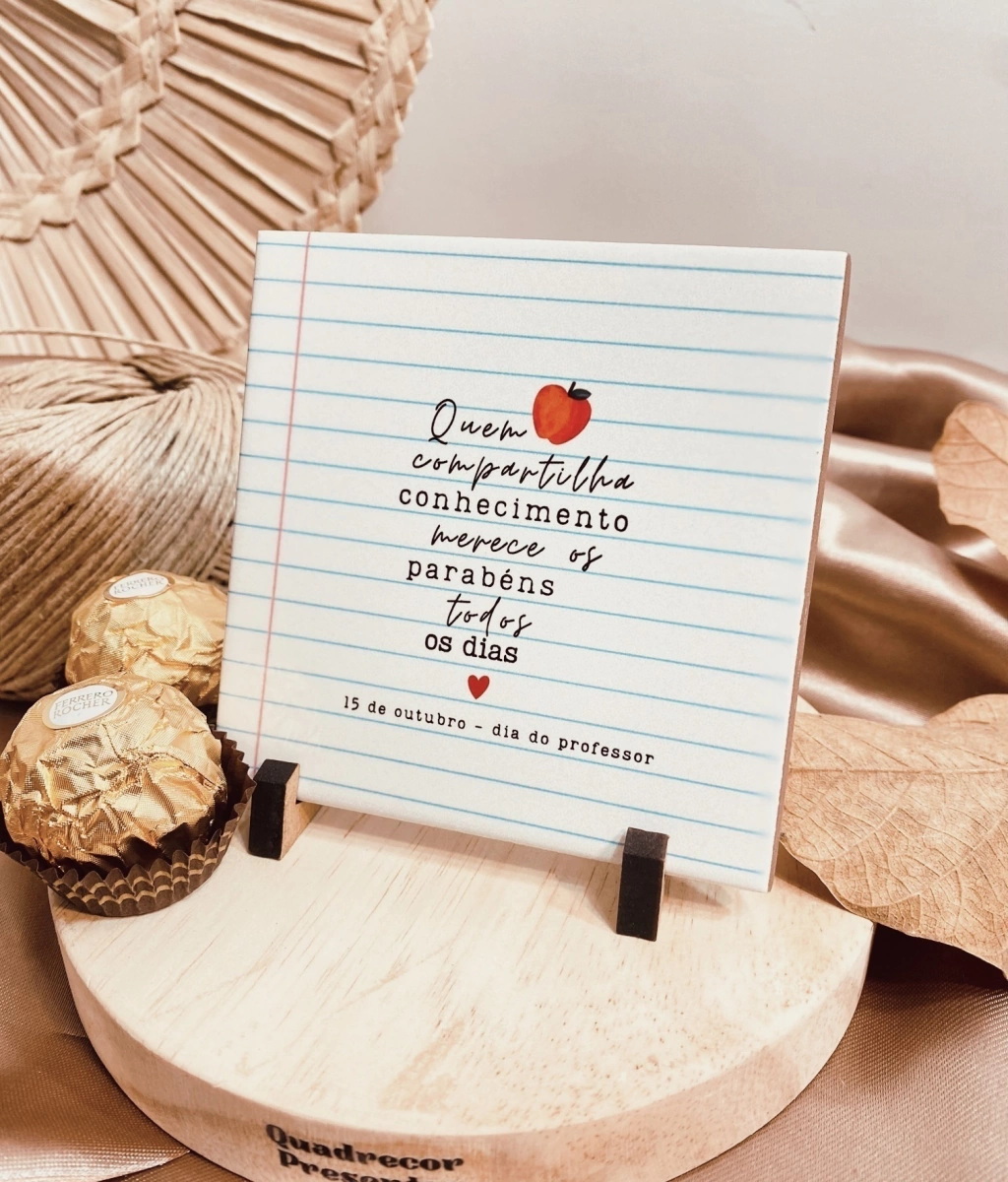 Celebre o Dia dos Professores com um presente que toca o coração! O Mini Azulejo com frase é a escolha perfeita para homenagear aqueles que fazem a diferença em nossas vidas. Este azulejo de 10x10cm, feito de cerâmica, é uma peça única que pode ser personalizada com uma frase especial, tornando-o ainda mais significativo.