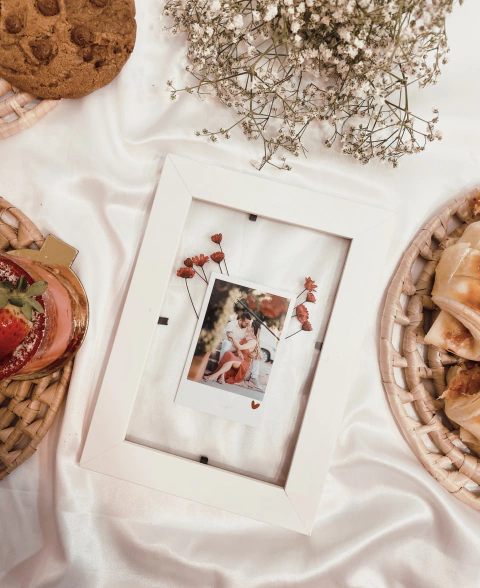 Lindo quadro florescer com vidro duplo personalizado com sua foto favorita e detalhes com florzinhas.